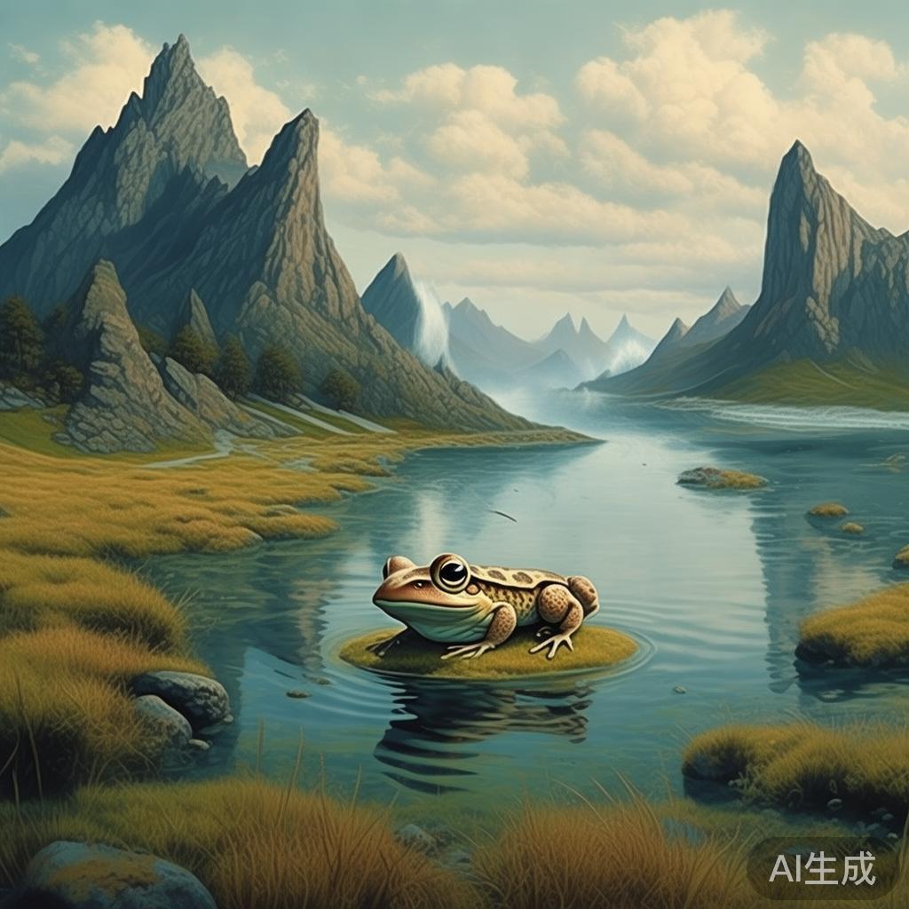 那片原野的边缘,山峦起伏,如同一条巨龙蜿蜒在天地之间。在它的这一侧,是一片迷人的沼泽地,水塘静谧而清澈。就在这温暖的水面上,住着我最好的朋友——一只青蛙。每当阳光洒下时,它的皮肤闪烁着微微的光芒,好似被镀上一层金色。山的另一边,却是无边无际的大海,波涛汹涌,拍打着岩石发出震耳欲聋的轰鸣声。海上的雾气,总是在晨曦中神秘地弥漫,与远处的山岭交织在一起,像是一幅奇幻的画卷。